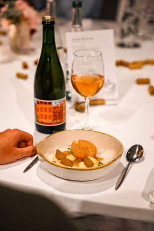 Autour d’une grande tablée conviviale, un menu d'accords mets & vins est pensé pour mettre en lumière un domaine viticole invité.